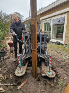 Eerst 2 palen heien en daarna de put meteen uitgegraven.