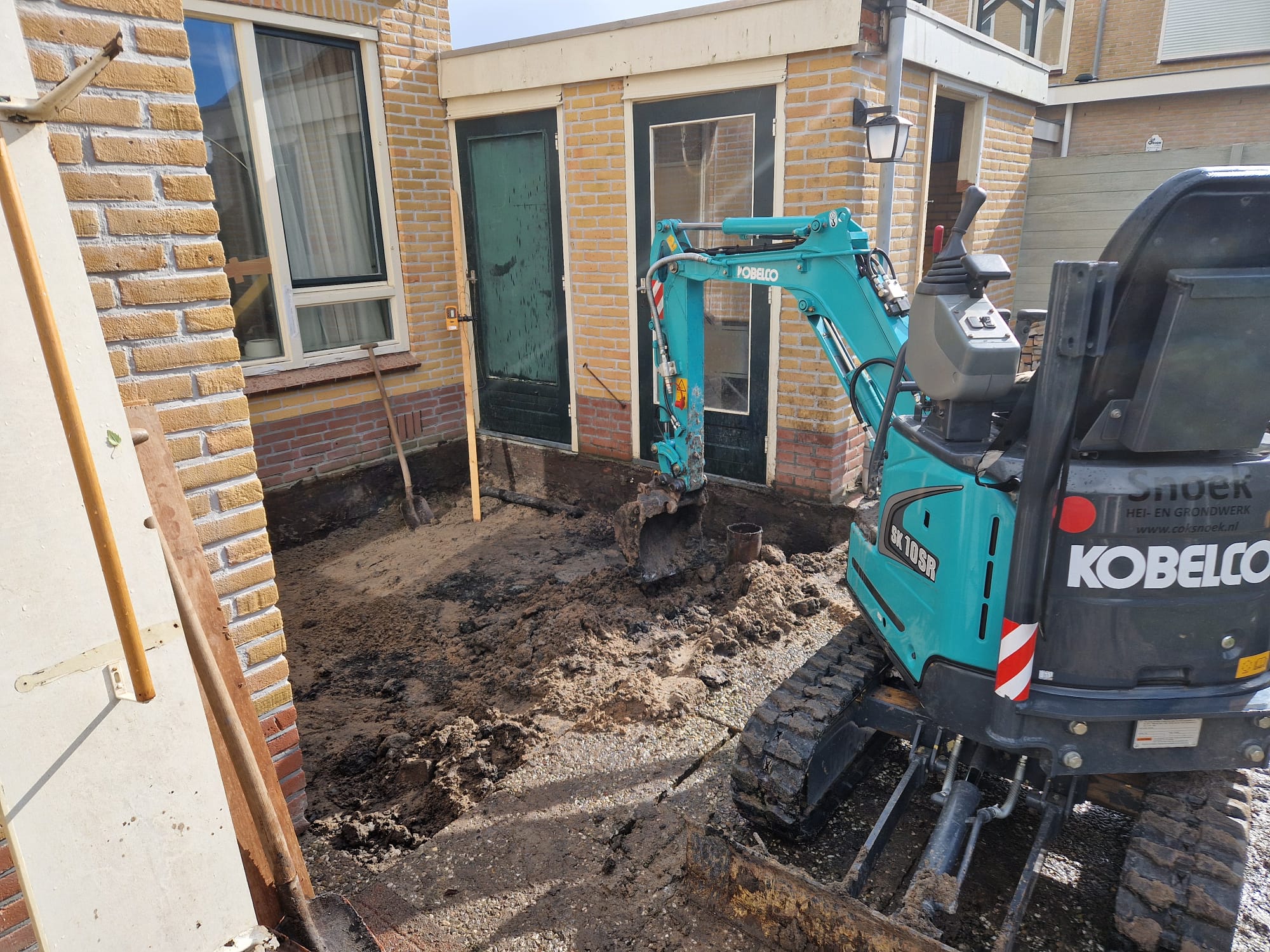 Uitgraven na het heien met minigraver